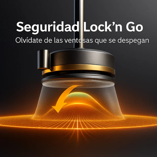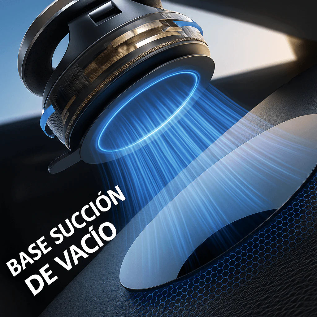 Base de succión al vacío: se pega con fuerza extrema. No se cae, no se mueve, no vibra.